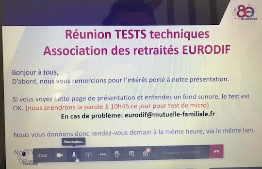 Conférence test pour établir le lien avec LMF (La Mutuelle Familiale) Copie d’écran :